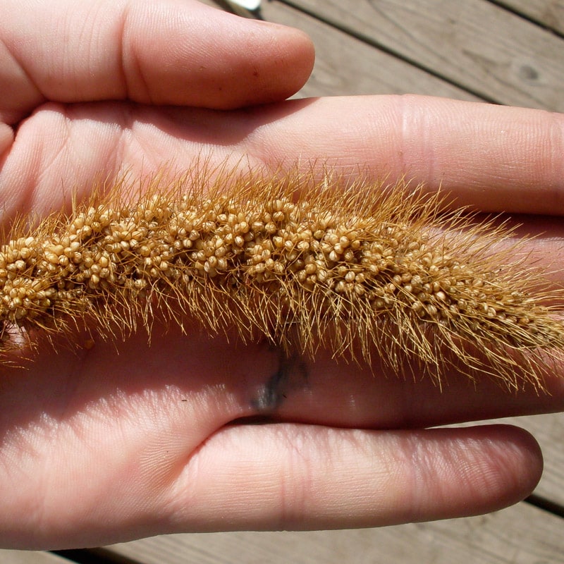 Foxtail millet is the type used for bird food. Small seeds have yellow hulls that must be removed before humans can eat it (not an easy task). Very easy to grow, but difficult to save seed from unless you have zero birds in your garden (but who would want that?!). Try using it as a cut flower, feeding it to chickens and ducks, or fermenting it into beer. Given to The Seed Ambassadors Project by The Lithuanian Ministry of Agriculture in Dotnuva, Lithuania. The breeder there had been working with millets since long before the collapse of the Soviet Union and he said the birds at the zoo prefer his varieties.