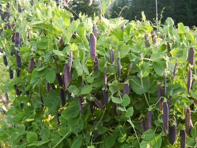 Collect seed from pods that are fully dry. Shell by hand or by dancing, winnow to clean. Test for dryness with a hammer – dry peas shatter. When seeds are very dry, freeze to kill weevils. Some cross-pollination may occur, but peas predominantly self-pollinate so no isolation is needed.