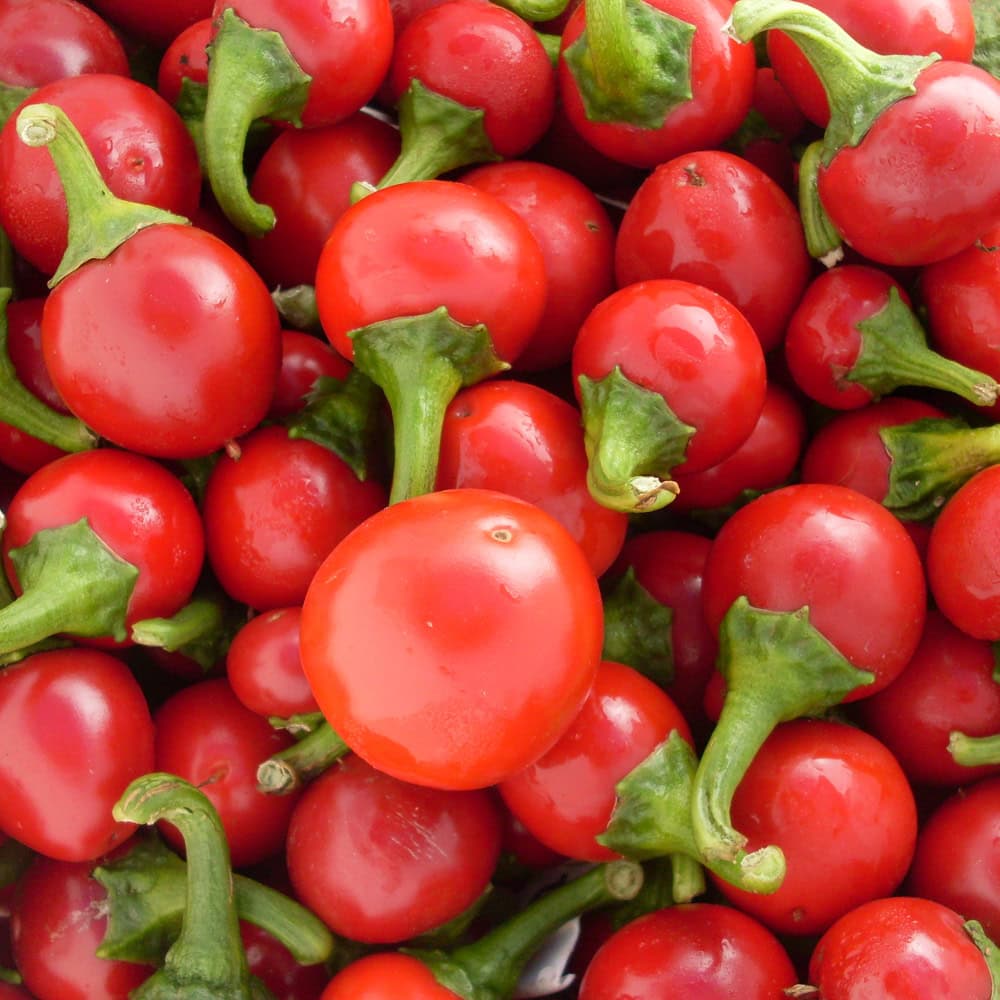 Classic Hungarian hot pepper with a rich flavor. Heat is high but not too extreme. Round, red cherry shaped fruit are about 1” wide and deep red when ripe. Relatively thick walls for a hot pepper make this a great variety for hot sauce, stuffing, or drying for spicy paprika. Of our hot pepper offerings, it is one of the best for pickling whole. Early to ripen and productive in our climate. Our friend and collaborator, chef Tim Wastell of Portland, Oregon, made a delicious fermented, seedless hot pepper sauce with Szentesi Cherry for the 2015 Culinary Breeding Network Variety Showcase. A great alternative to Cherry Bomb, the Semenis/Monsanto hybrid. We originally sourced this variety from a Hungarian seed company while traveling as the Seed Ambassadors Project in 2008. Aka Szentesi Cseresznyepaprika in Hungarian. The variety originates in Szentes, a town in south-eastern Hungary, an area famous for growing amazing paprika.