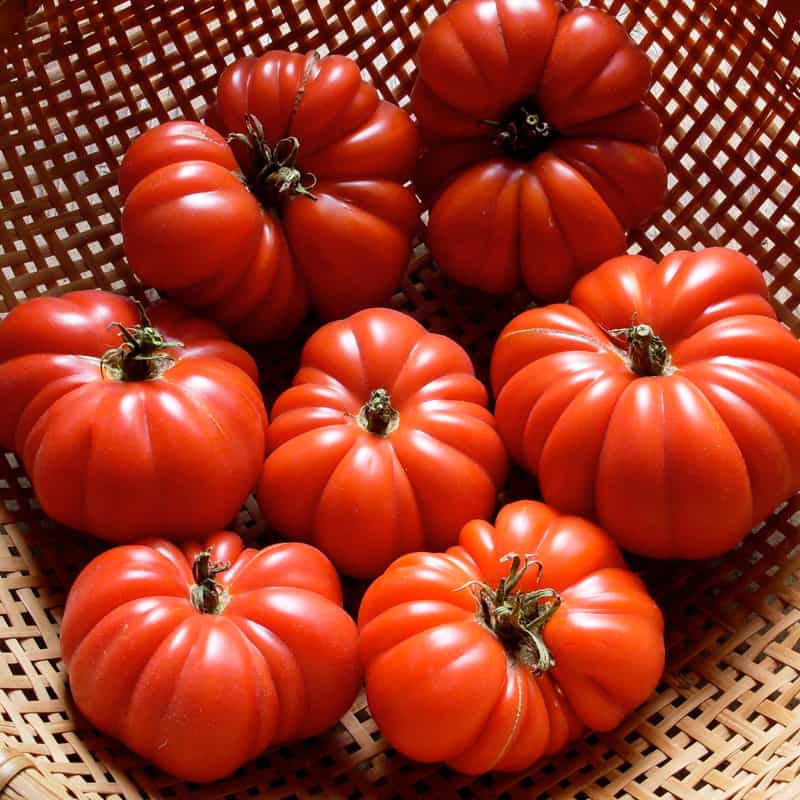 Tall plants produce red, ruffled, fluted, 3-4″ fruit weighing 3-4 oz. A high yielding and beautiful tomato similar to the Italian variety Costoluto Genovese but earlier to mature. Good flavor with an excellent, slightly tart bite, Petrillo is perfect diced and thrown fresh into pasta or salad. Ripe fruit keep well on the plant and in the kitchen, and produce very few seeds. Originating in Puerto Rico pre-1952, we sourced it from USDA GRIN (Germplasm Resources Information Network), the US equivalent to a national gene bank.
